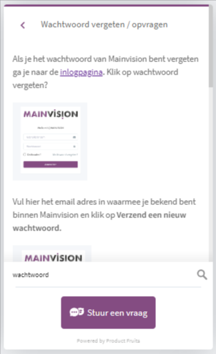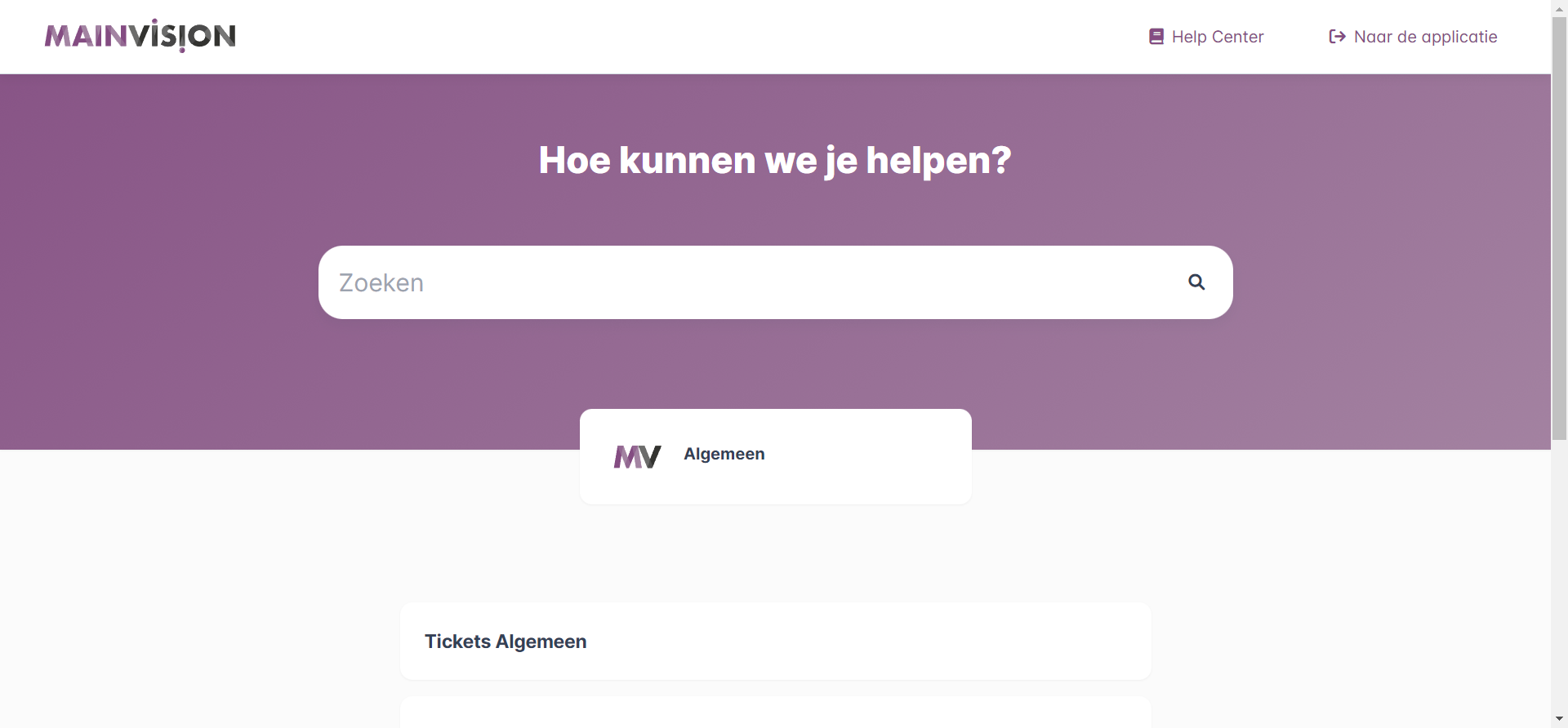 Het Helpcenter helpt je bij het gebruik van MainVision en geeft je de mogelijkheid om een vraag of opmerking te sturen.