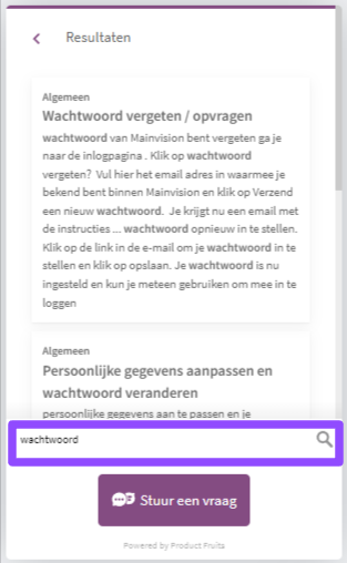 In de kennisbank kun je, net als in het Helpcenter zoeken naar een omschrijving of trefwoord waar je meer informatie over zoekt of je klikt op één van de voorgestelde artikelen.