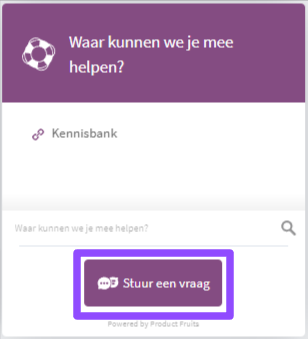 Om een vraag, opmerking of andere feedback te melden klik je in het Helpcenter op de knop Stuur een vraag