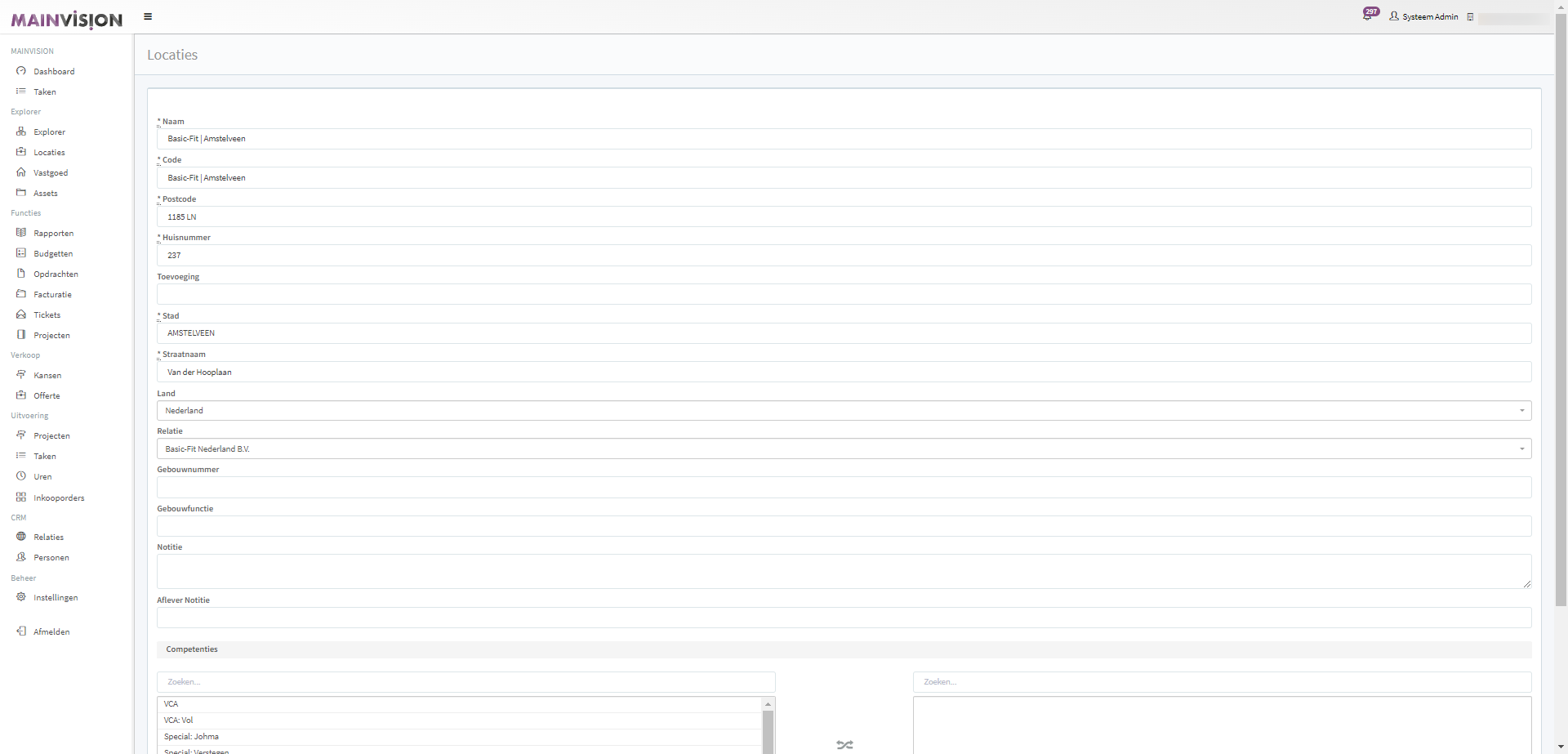 Voor het kiezen in het veld Relatie maak je een keuze via het drop down menu. Je kunt een locatie alleen aanpassen naar een bestaande relatie. Voor meer informatie over relaties, klik HIER