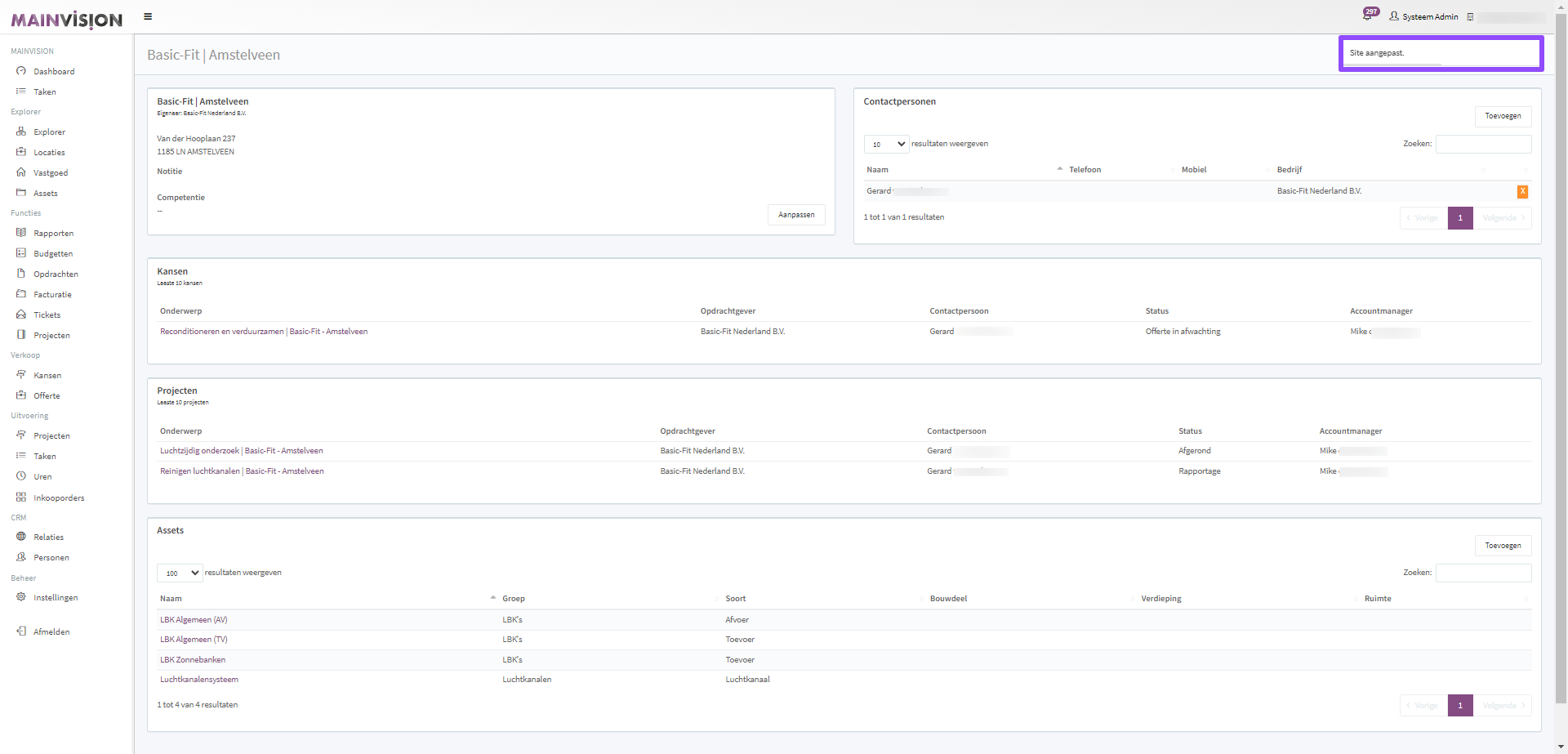 De locatie is aangepast en de overzichtspagina van de locatie wordt weer geopend.