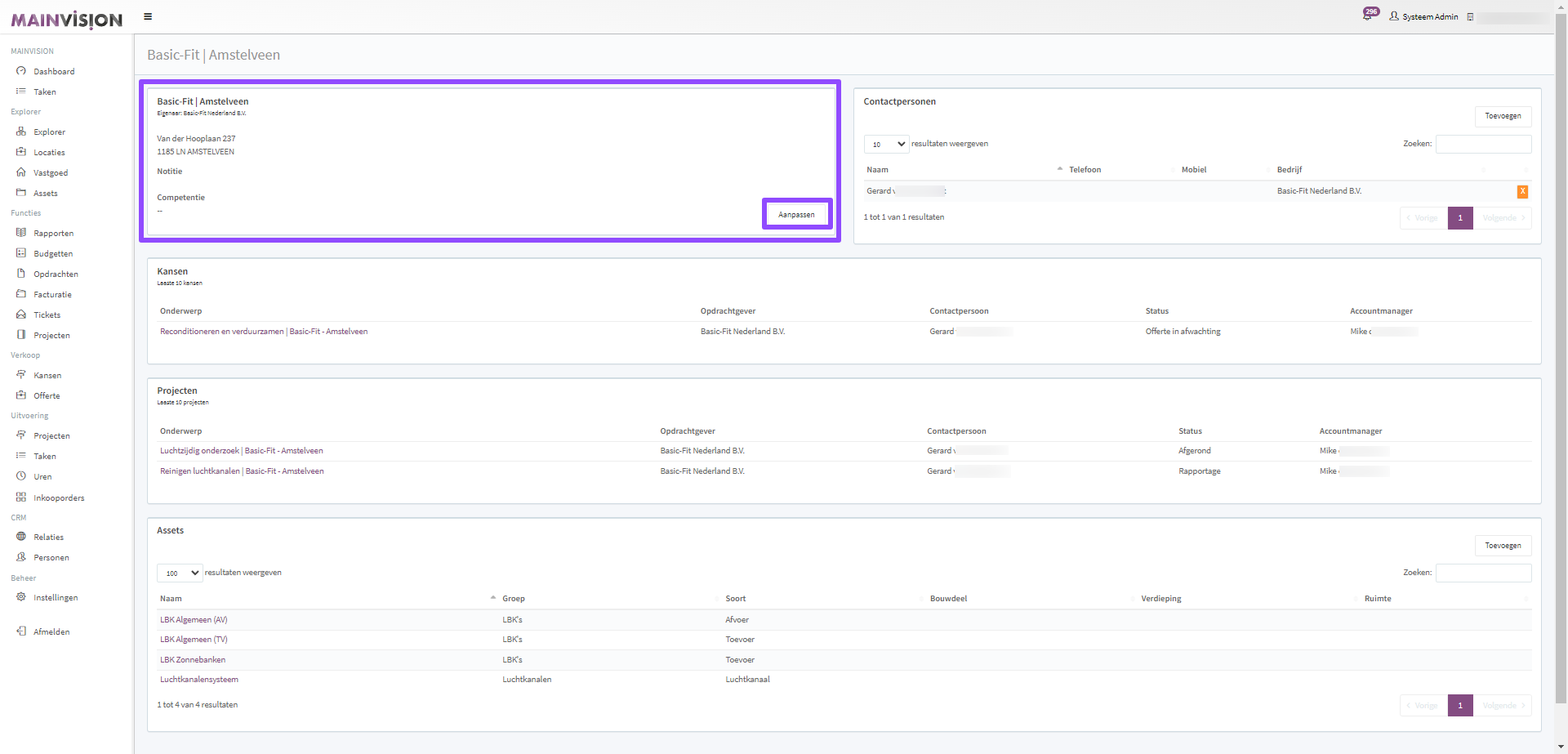 Om de locatie gegevens aan te passen klik je op de knop Aanpassen.