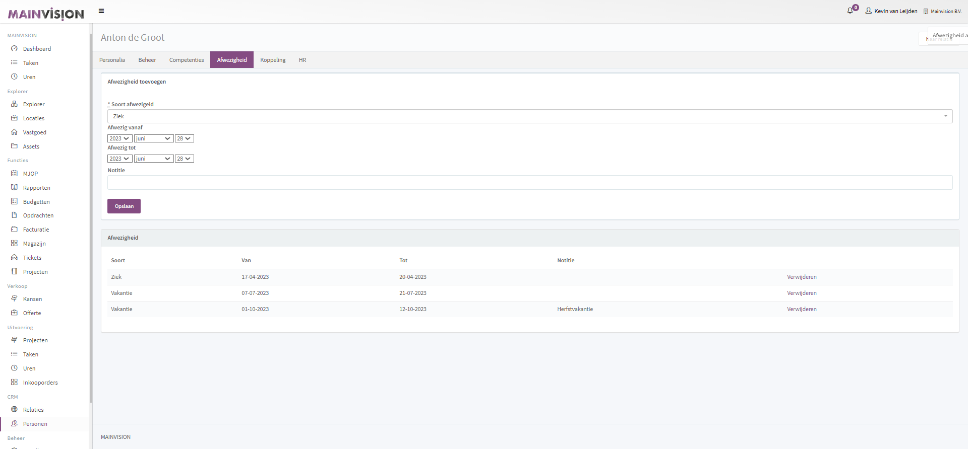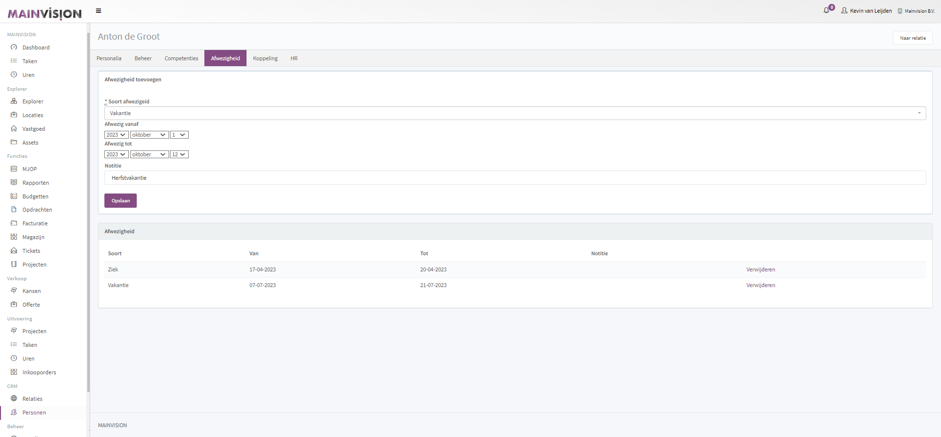 Om de afwezigheid van een persoon in te zien en te wijzigen open je de persoon.