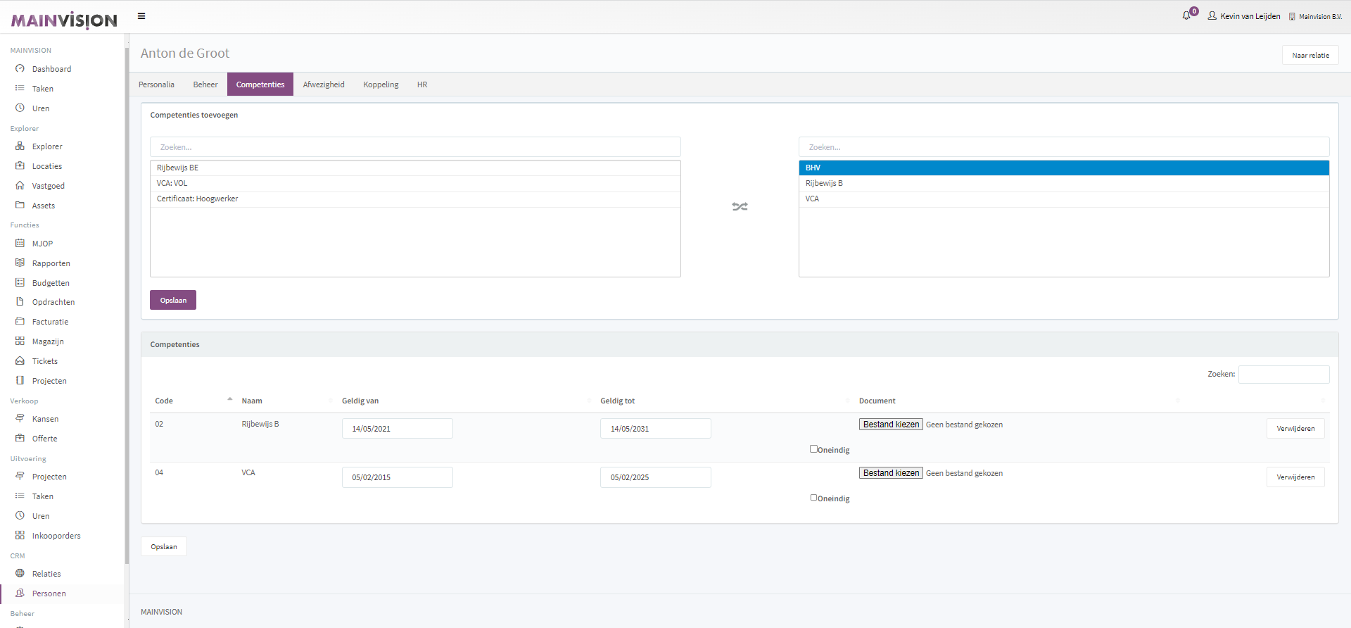 Om de competenties van een persoon in te zien en te wijzigen open je de persoon.