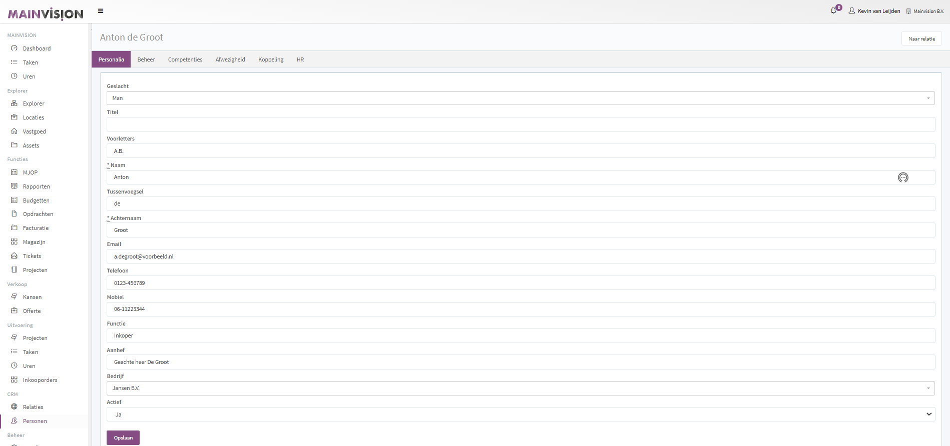 Klik op de naam van een persoon om deze te openen en de details te bekijken. Je ziet hier de informatie die van deze persoon is opgeslagen. Voor meer informatie over het wijzigen van een persoon, klik Hier
