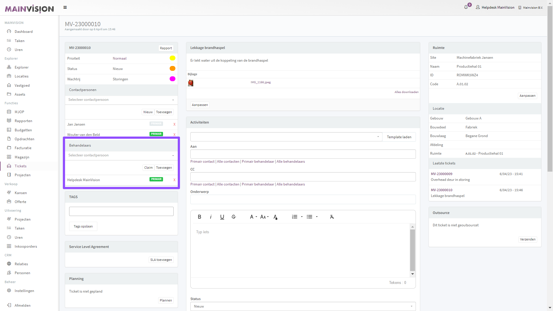 Open een ticket dat je gaat behandelen. Voor meer informatie over het zoeken en openen van tickets, klik HIER