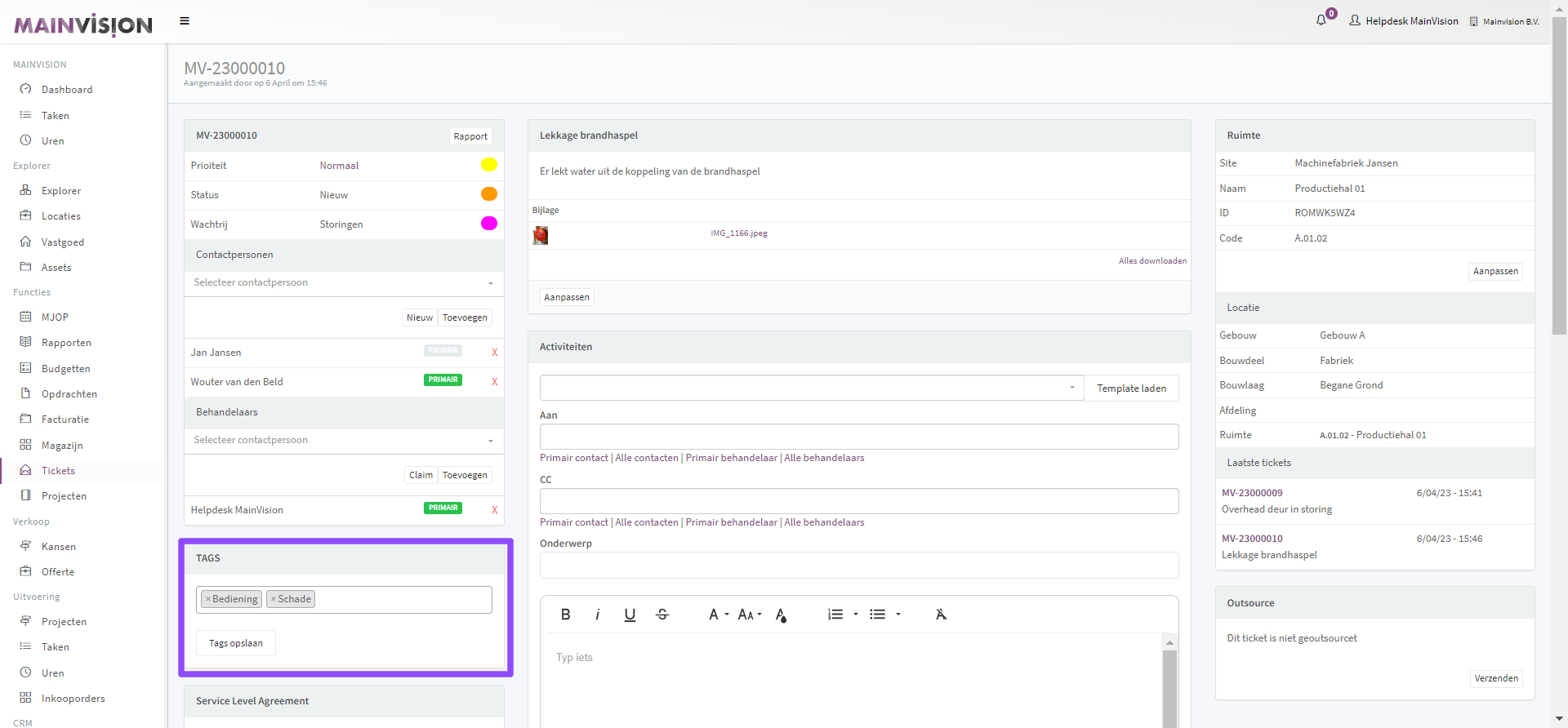 Hier zie je of er één of meerder tags aan dit ticket gekoppeld zijn.