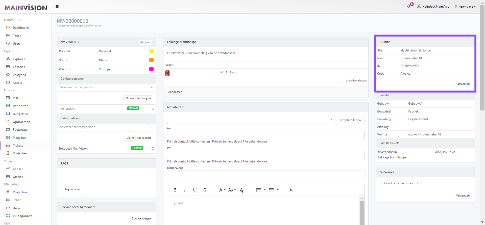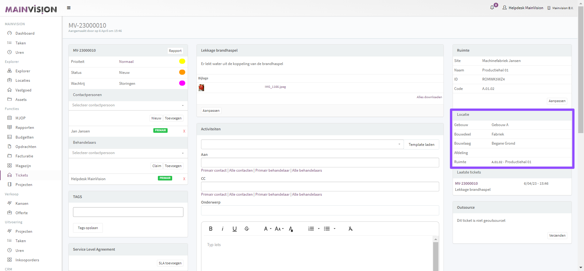 Hier zie je aan welk object dit ticket gekoppeld is.