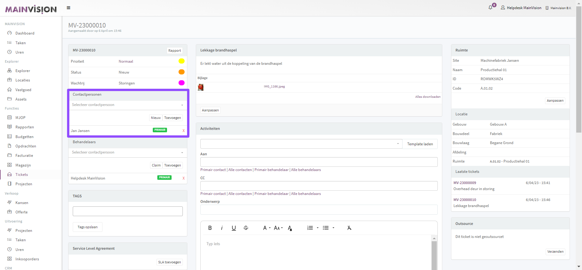 Er kunnen meerdere contactpersonen aan een ticket gekoppeld worden, waarvan er slechts één primair kan zijn