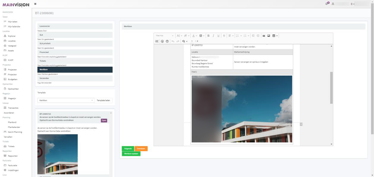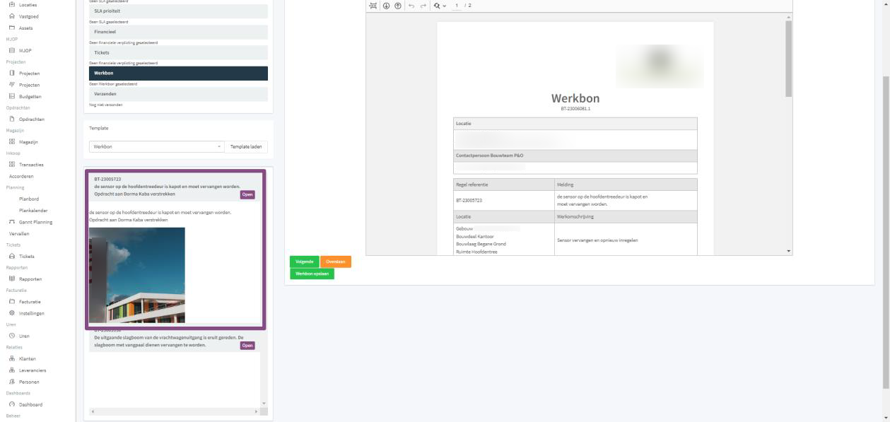 Klik op de knop “Werkbon opslaan” Als de werkbon alle benodigde informatie bevat. Klik daarna op de knop “volgende”