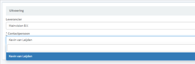 LET OP! Om de outsource te kunnen versturen is de contactpersoon verplicht. Is er geen contactpersoon beschikbaar om te kiezen bij deze leverancier, maak die dan eerst aan.