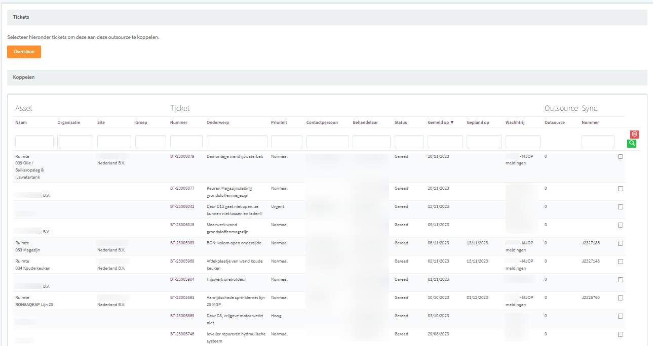 In het volgende scherm kun je kiezen om ook andere tickets aan deze outsource te koppelen