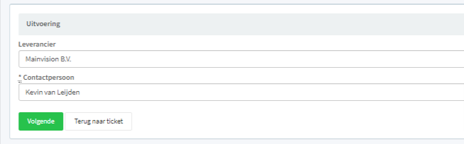 Klik op “volgende” om de selectie van de leverancier en contactpersoon te bevestigen.