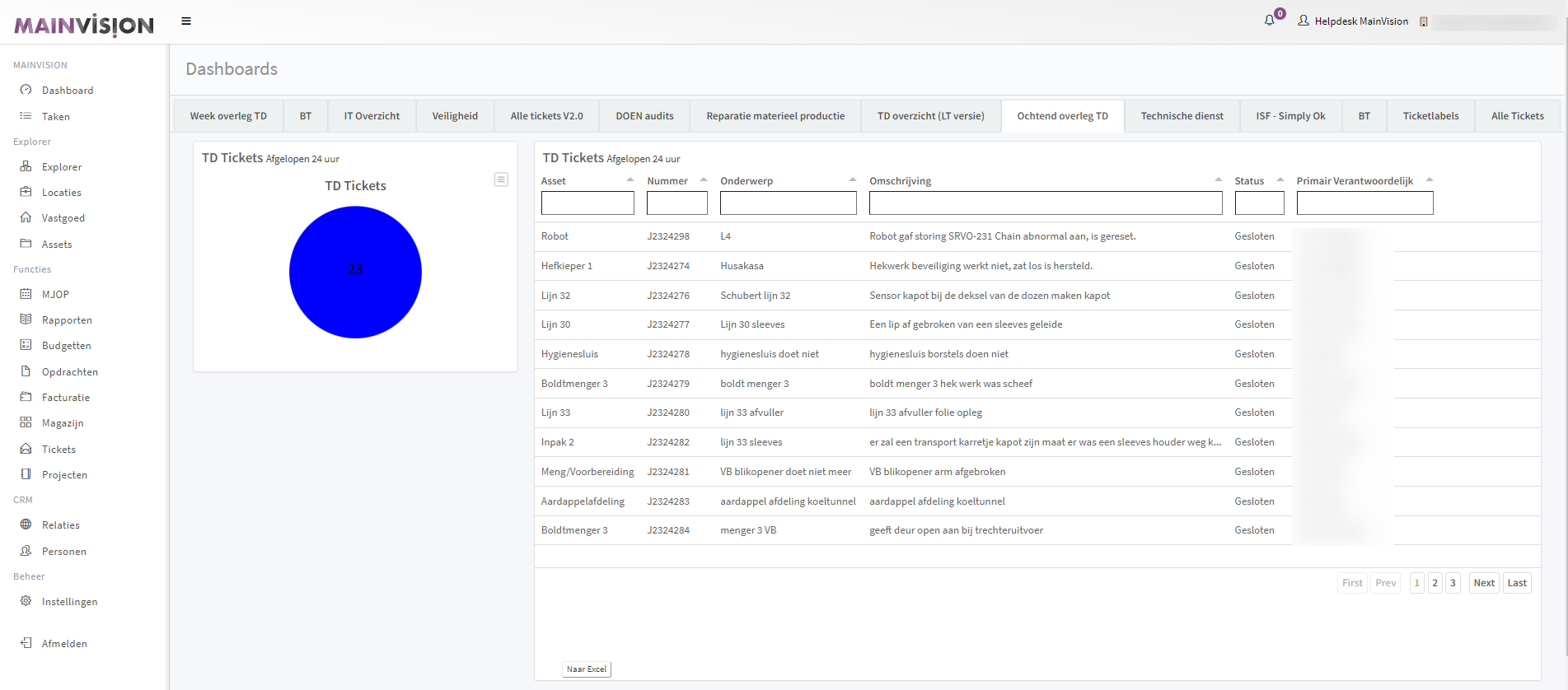De ticket dashboards zijn samengesteld om 1 één oogopslag de meest relevante en actuele tickets te vinden.