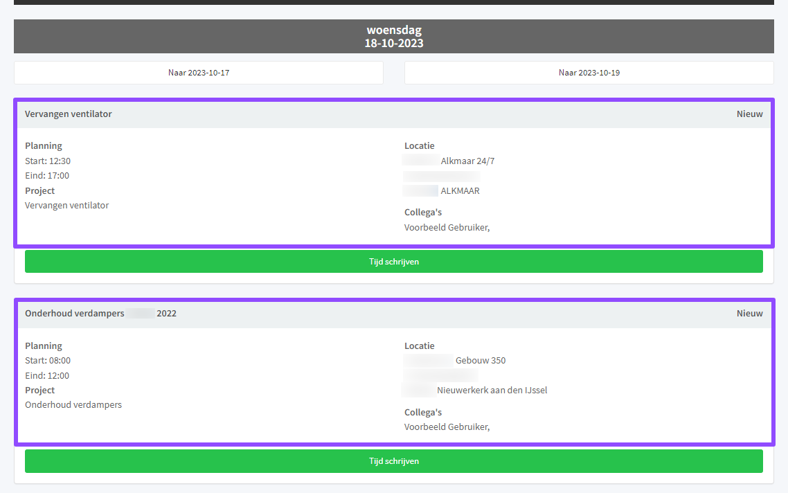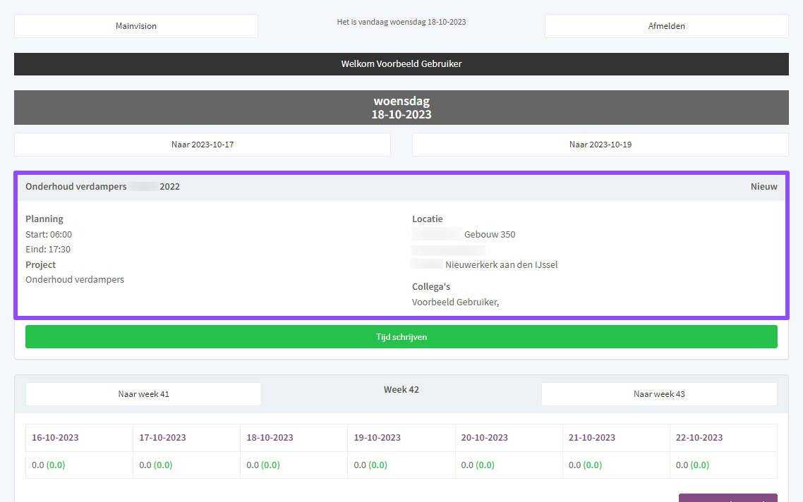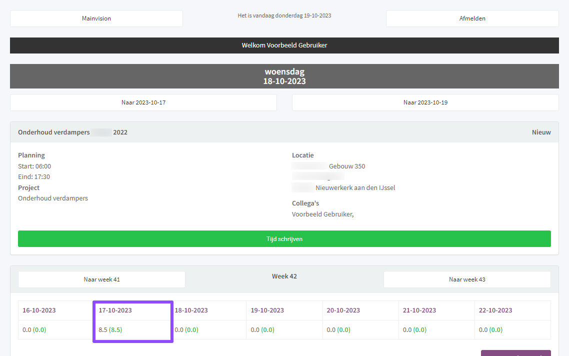 Je kunt tijd schrijven op het project of de projecten waar je door de planning die dag bent ingedeeld.