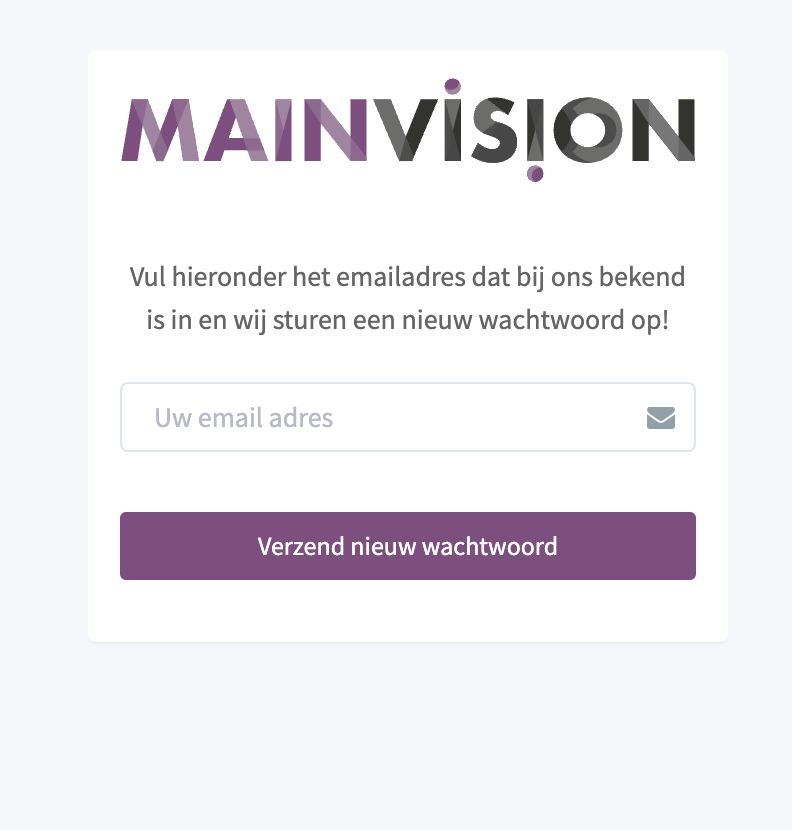 Als je het wachtwoord van MainVision bent vergeten ga je naar de inlogpagina. Klik op wachtwoord vergeten?